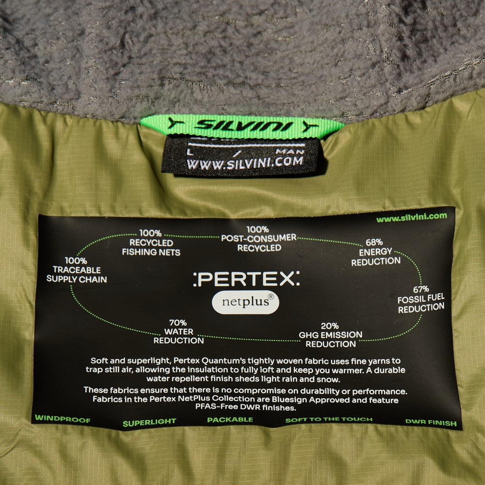 The Sassolungo men's jacket is perfect for demanding outdoor activities such as ski touring, hiking, or other movements in cold and windy conditions. It is made from innovative recycled materials, with the main fabric being Pertex® Quantum NetPlus® made from recycled fishing nets, providing excellent wind and water resistance while remaining highly breathable. The warm Primaloft® Evolve Insulation Active lining ensures thermal comfort, maintaining optimal body temperature during activity without adding extra weight. Stretch Powertherm side panels enhance mobility and comfort during movement. The integrated slim hood fits securely on the head, protects the neck, and provides reliable weather protection. The hem is adjustable with a stretch cord for a perfect fit and extra protection against cold. The jacket features two front zip pockets and one chest pocket for secure storage of essentials. Reflective details increase visibility and safety in low light. Combining lightweight construction, thermal insulation, and functional features, the Sassolungo jacket is an ideal choice for ski touring and other outdoor activities from autumn to spring, providing maximum comfort, protection, and freedom of movement.