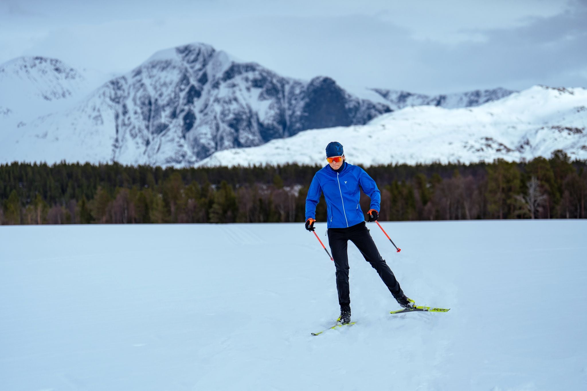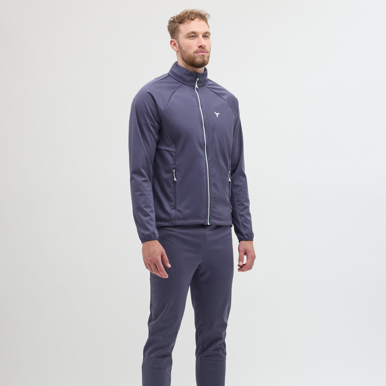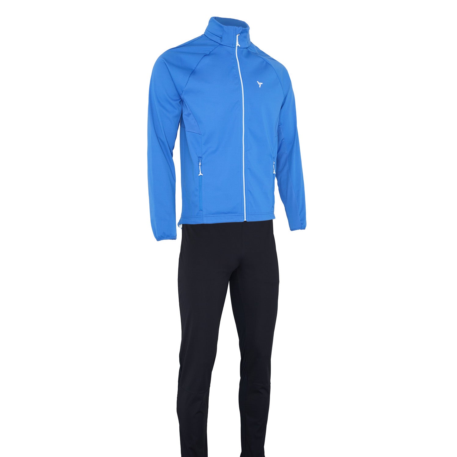 Men’s Cassiano jacket & Sorago pants set with Softshell Light and Quatroflex Power, breathable, windproof, zip pockets, reflective details. Ideal for cross-country skiing and outdoor activities.