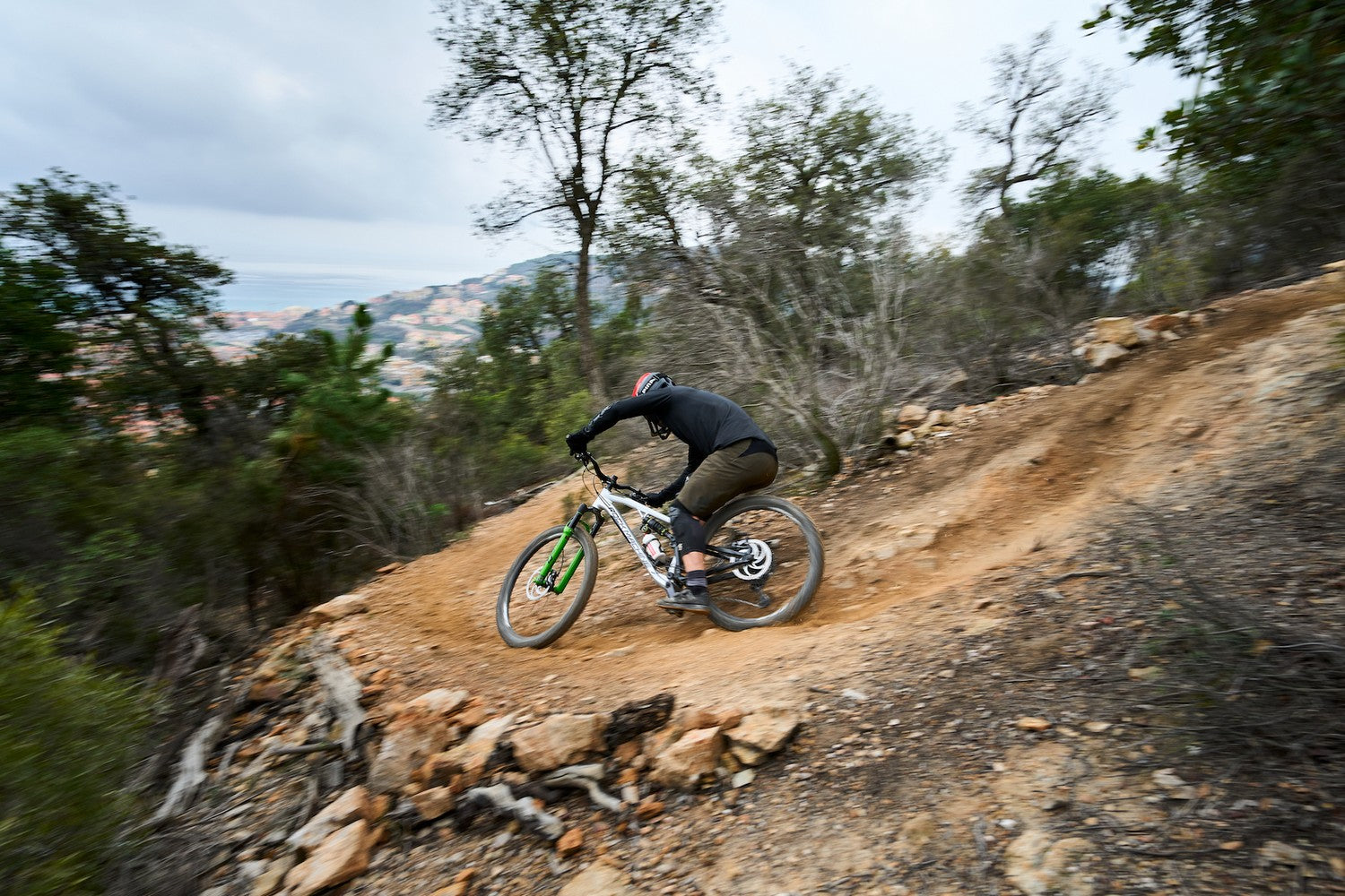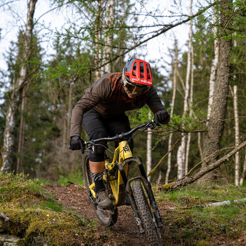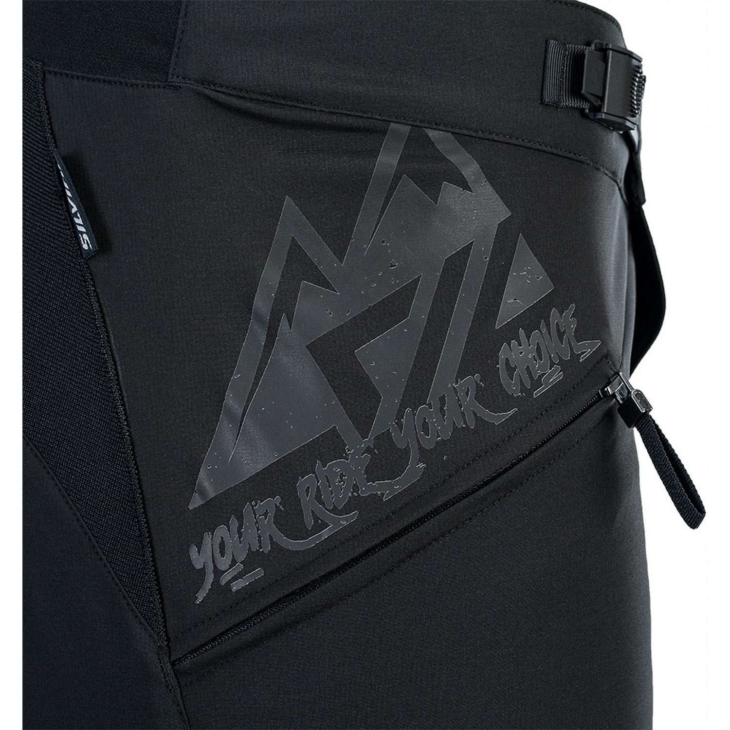 Men’s enduro shorts in lightweight Woven Stretch with waist buckle, rear stretch panel, ventilation, silicone grips, and reflective elements for comfort and visibility.