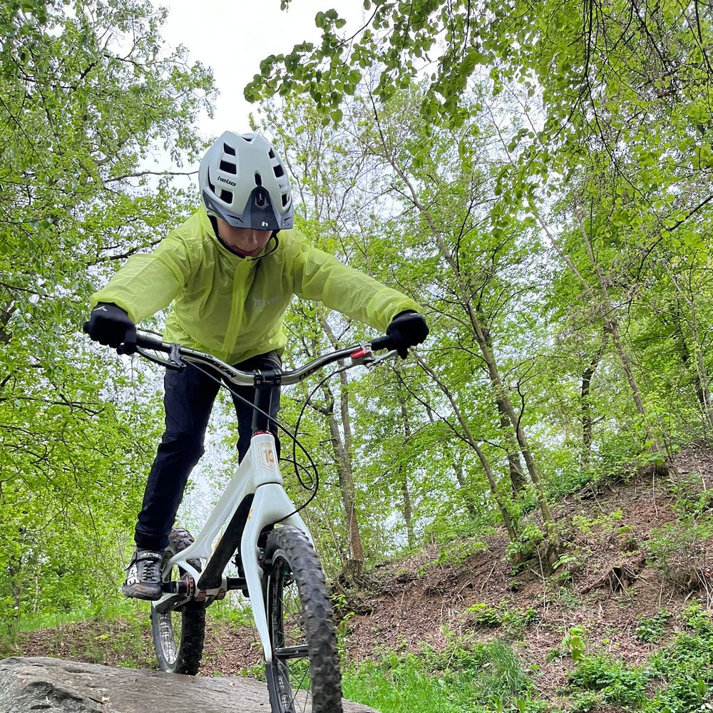 Savio is a unisex cycling rain jacket that stands out for its exceptionally low weight, easy packability, and reliable protection against rain. It is made from durable coated polyester material, which, together with taped seams and lightweight mesh ventilation under the arms (Light Mesh), provides effective waterproofing as well as partial breathability for greater comfort during activity. The compact hood with a soft fabric trim fits well around the head even in windy weather. When not needed, it can be easily rolled up and secured with a Velcro strap integrated into a loop behind the neck. The jacket features a full-length zipper, making it easy to put on and take off, even when wet. The extended back panel and elastic band at the waist ensure a good fit and prevent the jacket from billowing in the wind during rides. A practical feature is the ability to pack the jacket into a small integrated pouch on the front — an ideal solution to always have it at hand. Reflective elements increase visibility and safety in low-light conditions. Savio is an ideal choice for anyone looking for a lightweight, functional, and packable protection against bad weather. It is suitable not only for cycling but also for other outdoor activities where you appreciate a combination of low weight, durability, and practicality.