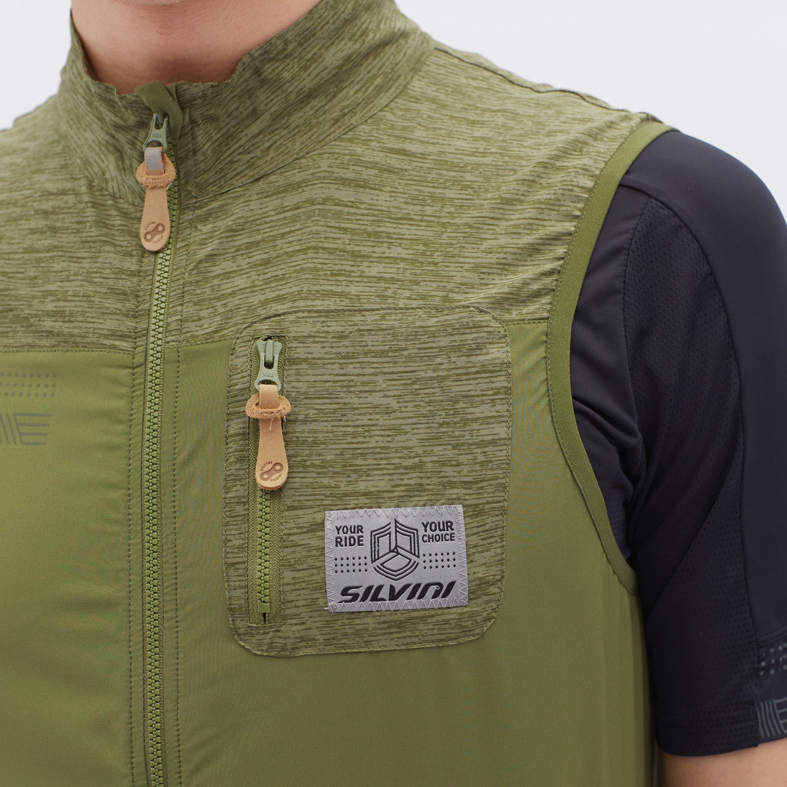 Men’s Cairo vest in lightweight, breathable Woven Light, slightly tailored, with three back pockets, zip pocket, and reflective details. Ideal for gravel biking and cycling.