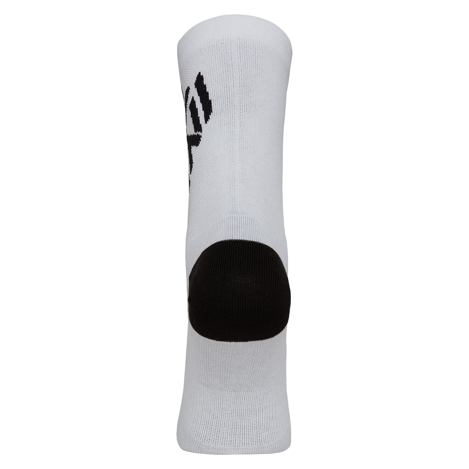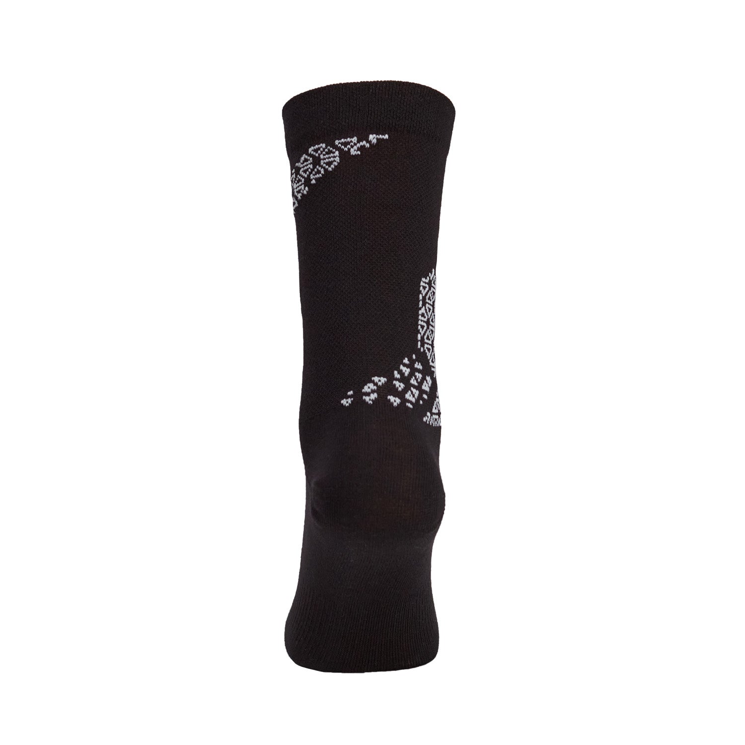 High unisex cycling socks made of cotton with an admixture of functional material. They are anatomically shaped and reinforced at the toe and heel. The socks are comfortable on the feet and wick away sweat well.