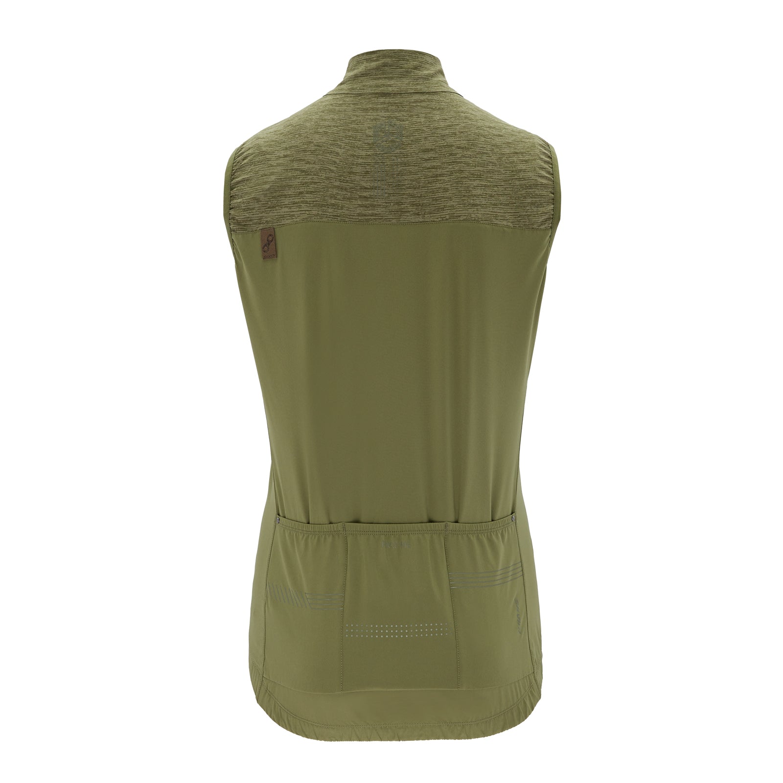 Women’s Cairo vest in lightweight, breathable Woven Light, slightly tailored, with three back pockets, zip pocket, and reflective details. Ideal for gravel biking and cycling.