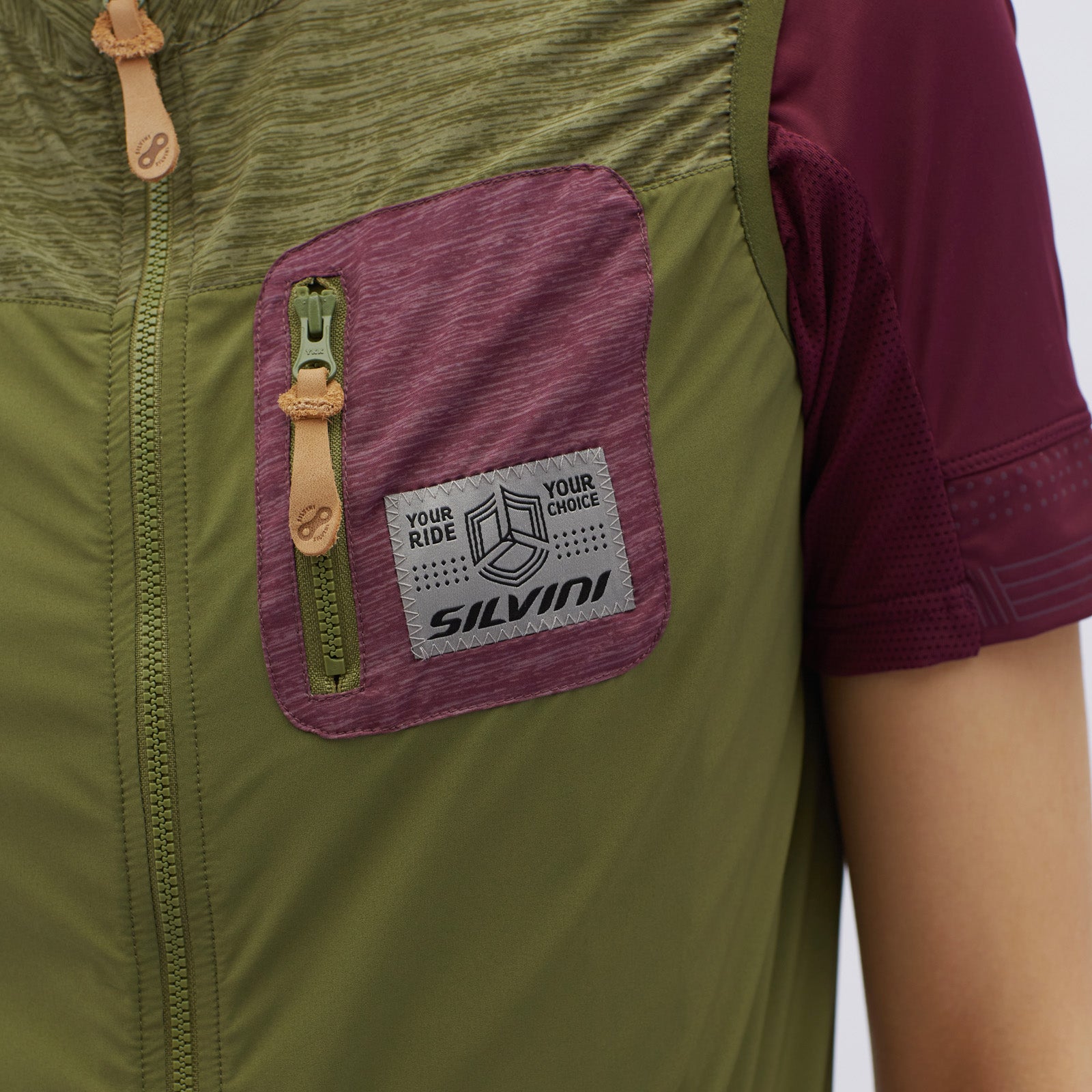 The women’s Cairo full-zip vest is perfect for gravel biking and other cycling activities. It is made from lightweight, breathable Woven Light material, providing comfort when layered and designed primarily as a second layer without windproof properties. The vest features a slightly tailored fit for a comfortable and modern look. On the front chest area, there is a zip pocket with a decorative patch, while the extended back includes a classic three-pocket design, allowing the vest to be easily packed and carried. Anti-slip elements on the back keep the vest in place during rides, enhancing comfort and stability. Reflective details in the color of the vest elegantly complement the design while increasing visibility and safety in low-light conditions. For optimal comfort, we recommend choosing a slightly larger size than your usual. The Cairo vest combines modern design, practical features, and functionality to provide maximum comfort and style during your cycling adventures.
