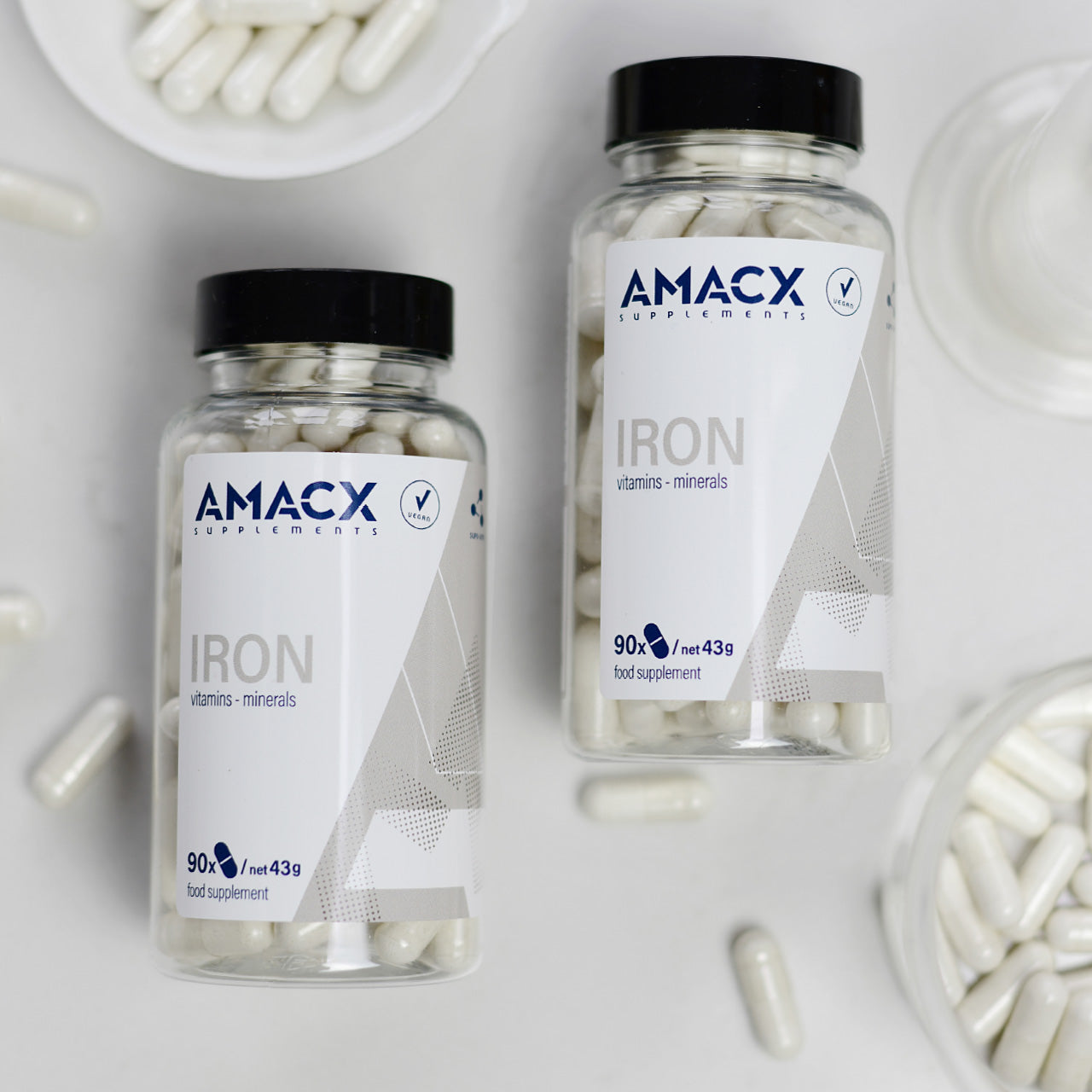 Amacx Iron supports energy levels and aids in the normal transport of oxygen in the body. Additionally, it boosts the body's immune system. Iron is a crucial mineral, especially in the realm of sports, as it is necessary for the production of hemoglobin. Hemoglobin resides in your red blood cells, facilitating the transportation of oxygen throughout your entire body. During endurance sports, such as running or cycling, ensuring an ample supply of oxygen to your muscles is crucial. Amacx Iron contributes to extra energy during fatigue, providing direct support to your sports performance.