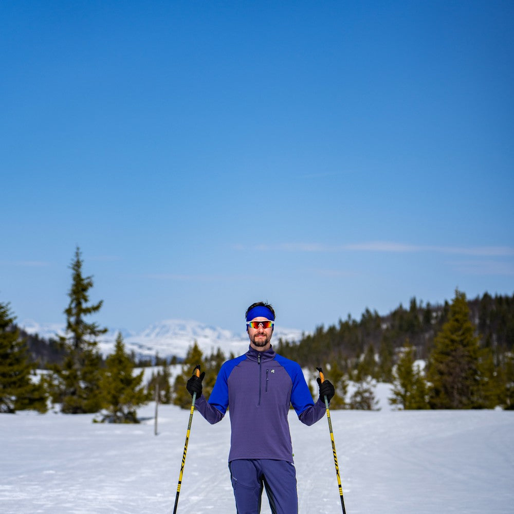 Men’s lightweight slim-fit sweatshirt with short zip, made from smooth and textured QuatroFLEX. Ideal as a thin mid-layer for cross-country skiing and other outdoor activities.