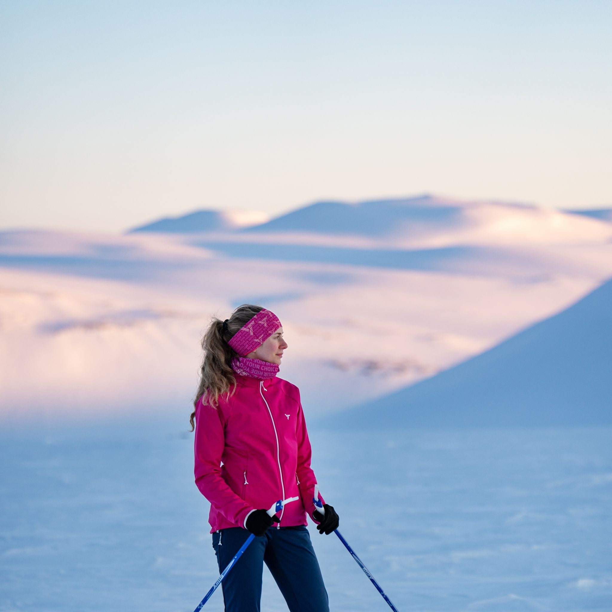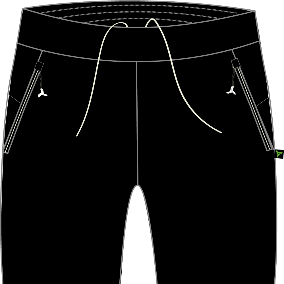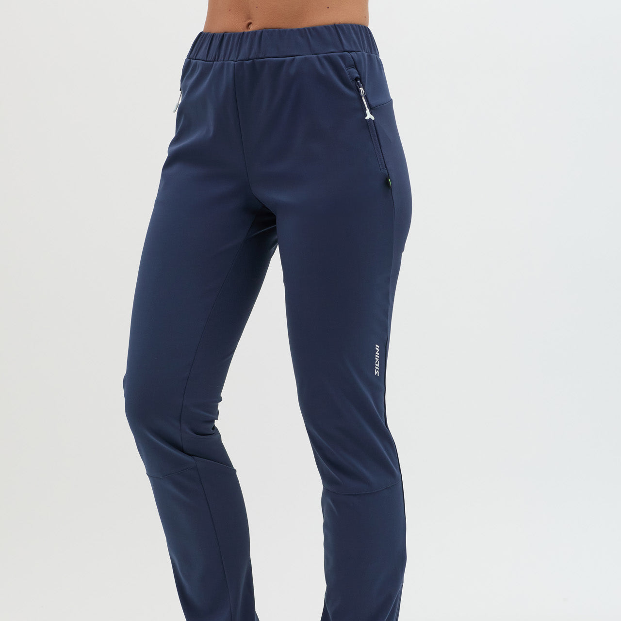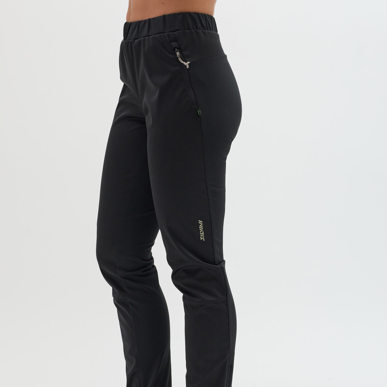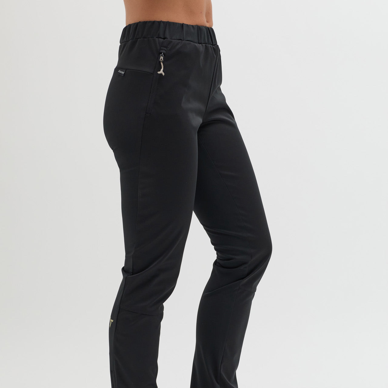 Women's Soraga pants made of Softshell Light with Quatroflex Power membrane (10,000 mm / 10,000 g/m²/24 h), breathable back panel, leg zippers, and reflective details. Ideal for cross-country skiing and outdoor activities.